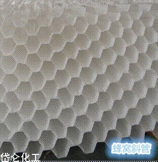 蜂窝斜管采用改性乙丙共聚塑料为材料,红外线恒温机械热拉成六角管状,然后采用专利技术,高频焊接
